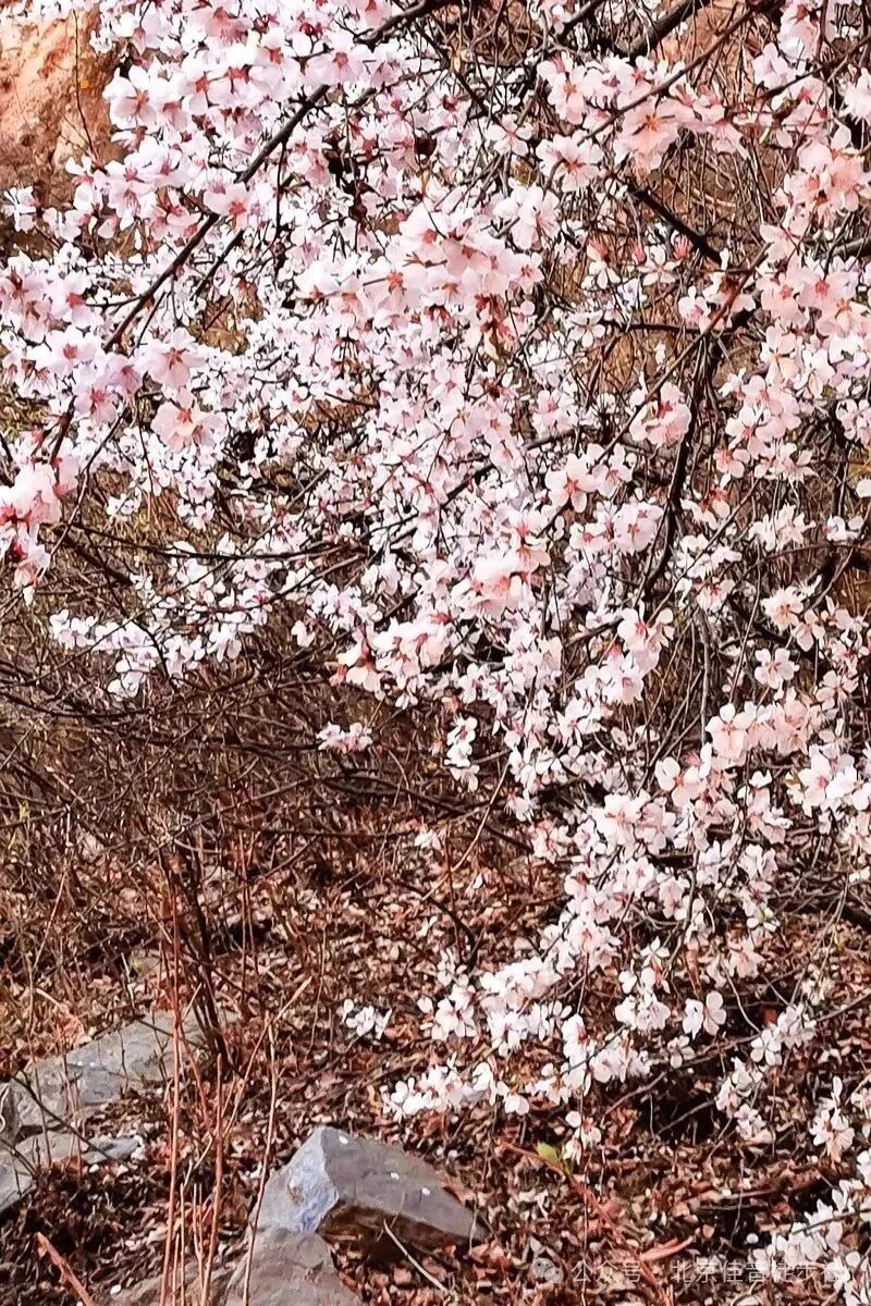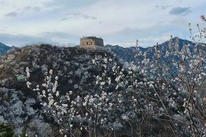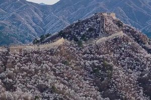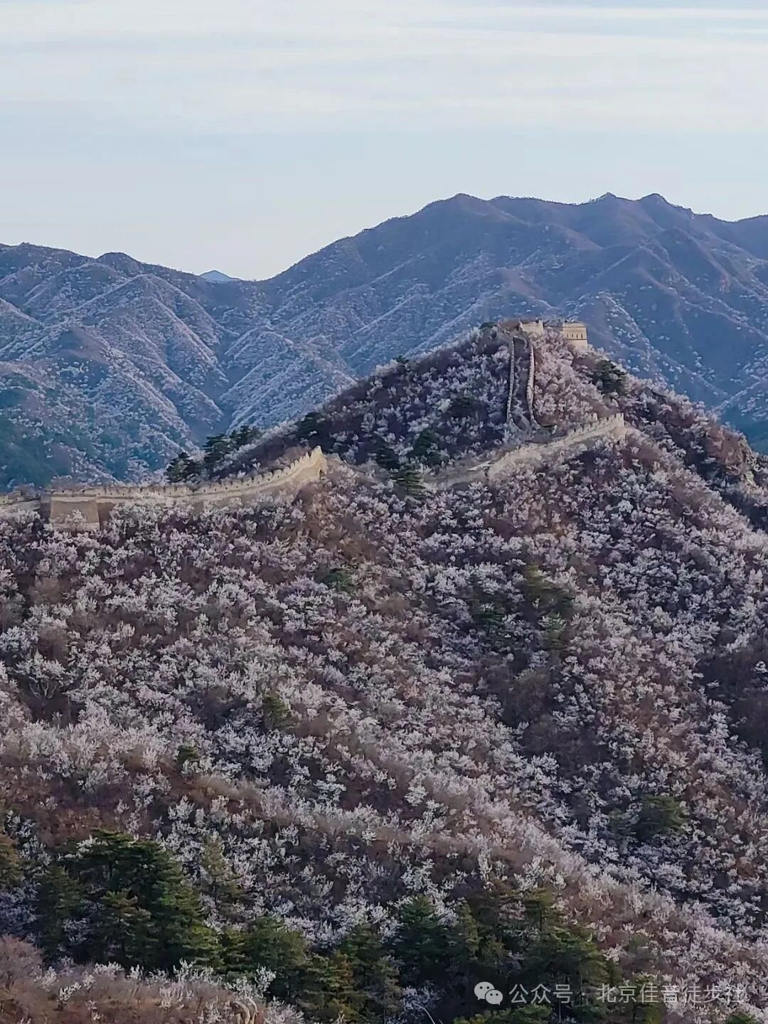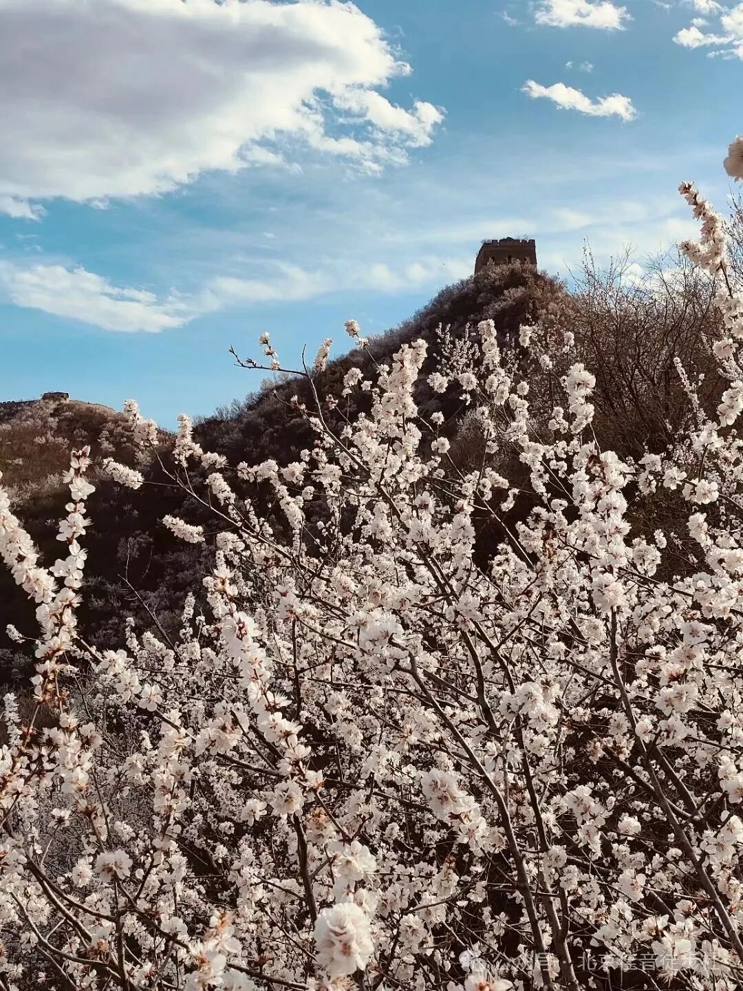 3月正值桃花盛放期,撞道口长城被粉白花海环绕,登高俯瞰如“花毯覆龙”。